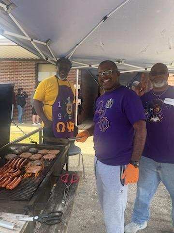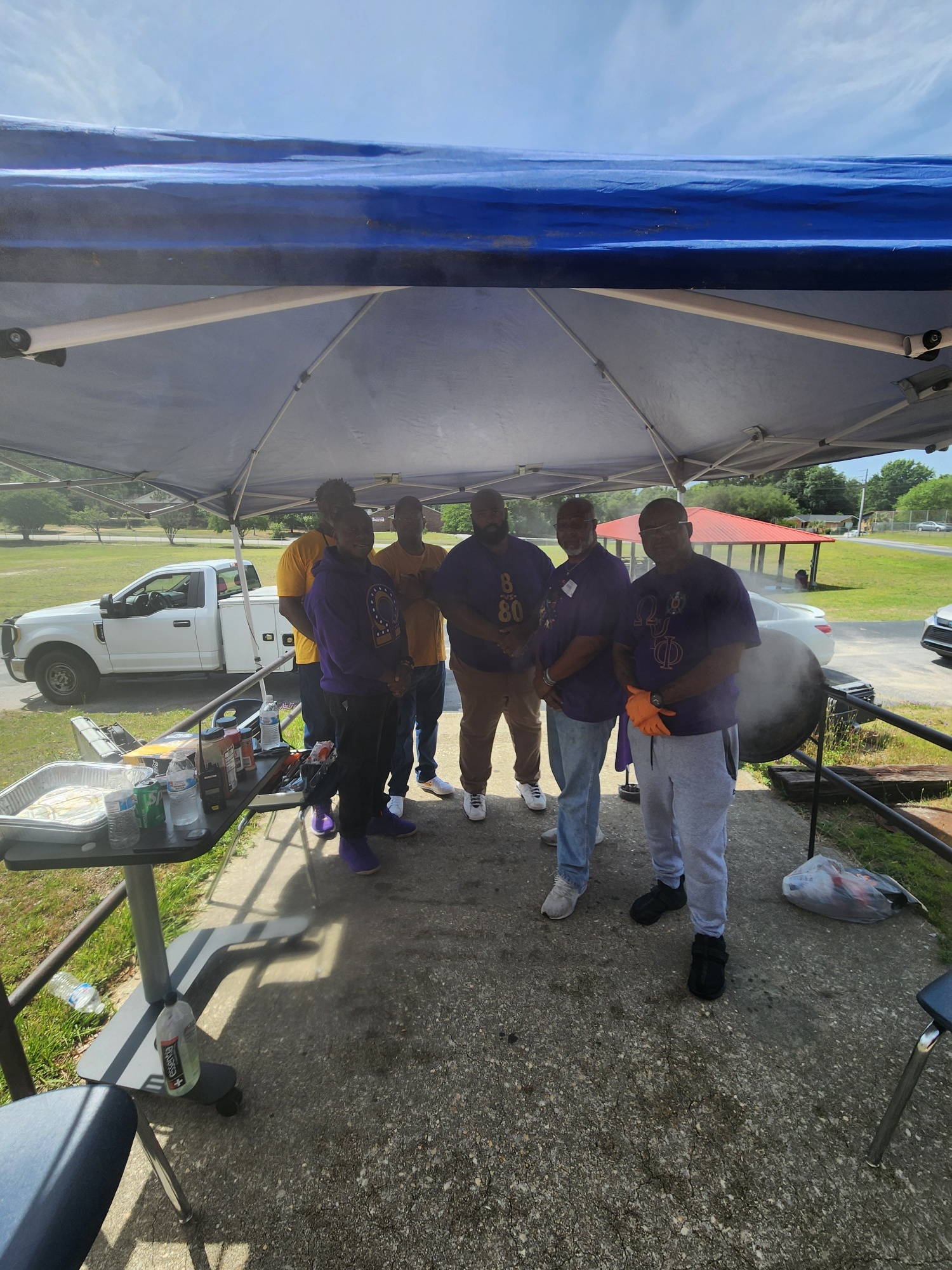 Members of the Gamma Iota chapter of Omega Psi Phi Fraternity Inc. participated in Teacher Appreciation Day at Bates Middle School. The "Rock Solid Ques" once again demonstrated their commitment to serving the Sumter community. Members Alvin Lumpkin, Cedric Johnson, John Williams, Jeffery Thomas, Jerry Washington, and Mike Davis provided valuable assistance by preparing lunch for all teachers in attendance. The menu featured hamburgers with all the trimmings, hotdogs, pasta salad, assorted drinks, and dessert. The brothers spent the morning cooking and engaging in fellowship. The event concluded with the lunch service and closing remarks, highlighting the fraternity's ongoing dedication until they are next called upon to serve.